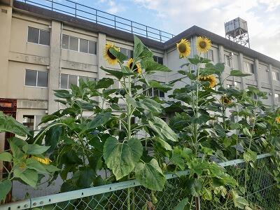 学校いっぱいにひまわりが咲いています!