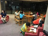 みんな真剣な表情で益子焼の絵付けのこと、水族館でイルカを見たことなど