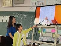 10月8日土曜日に、本校ならではの特色ある教育を公開するため、第1回オープンスクールを開催しました。1年生の写真は、本校ならではの低学年英語の授業、2年生はICTを活用した授業を公開しました。