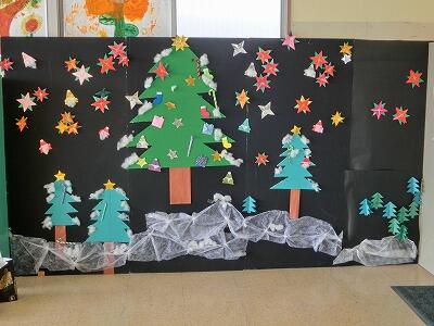 学校の昇降口や廊下は寒いのですが、綺麗な掲示を作っていただきました。
