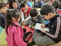 縦割りの班ごとに遊びの計画を立て、体育館で遊んだり、教室でカルタをしたりしました。