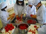 トマトが苦手な人にも好きになってもらおうと、トマトジャムを作り、全校生に試食してもらいました。
