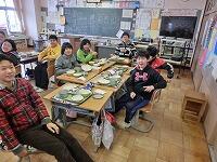 始めに、各教室で一緒に給食を食べました。