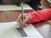 えんぴつの検定項目は、三つです。正しい持ち方で、文字が丁寧に書けるか、皆真剣です。