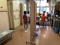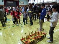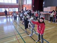 1位になった児童は、体育館の端から端まで投飛んでいきました。