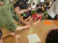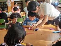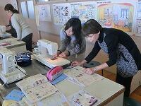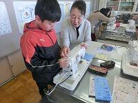 「アシストネット」の皆様にご協力いただいて、ミシンの実習の2回目が行われました。ミシン指導は糸の絡まりなどのトラブルとの戦いです。指導者一人ではとても対応できません。今回はおうちのミシンを持ってきてくださった方もいらっしゃり、本当に助かりました。子供たちも待たないでミシンが使えるので生き生きとエプロン作りに取り組んでいました。