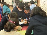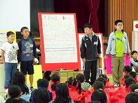 美化委員会の委員が正しい掃除の仕方をレクチャーしてくれました。その後話し合い活動です。児童集会でもコミュニケーション力をはぐくんでいます。