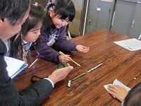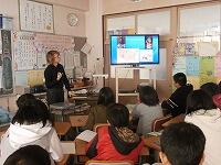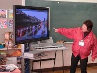 まず初めに校長先生が書画カメラを使い、正しいお箸の持ち方の説明が行われました。