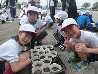 大宮南小学校は「ひまわりの学校」です。この夏もたくさんのきれいなひまわりに囲まれ、笑顔いっぱいの学校になるように全校生でひまわりの種をまきました。早く芽が出ないかなあ。