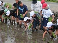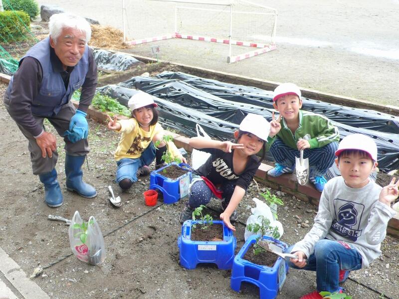 子供達は、苗の植え方を教わり、緊張しながら行っていました。