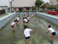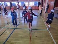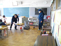この後、新しくなった救助袋を使っての避難を体験しました。小規模校ならではで5・6年生全員が貴重な体験しました。