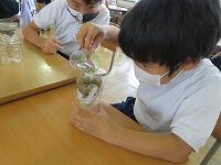 保健の先生に、どのように、汚れがついてしまうか。汚れがつくとどんな困ることがあるか。どのように手を洗えばきれいになるかを指導していただきました。それから、手の汚れが分かる薬を付けてから、いつものように手を洗って、洗い残した場所を調べました。みんな真剣に取り組んでいました。これからも、健康を守るため、折に触れて指導したいと思います。
