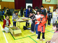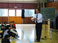 小規模特認校説明会の様子        「はなそう集会」は校長先生の折り紙の