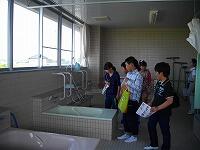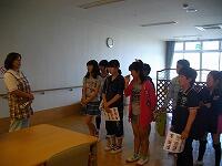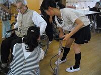 その後、これまでの感謝の気持ちをこめて、お年寄りの方々とお話しながら、車椅子のタイヤの空気を入れたり、雑巾でふいたりしました。