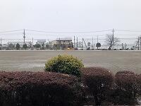 ↓↓1時間目が始まった頃の校庭の様子(職員室付近から見た様子)です。隅の方に、うっすらと積もり始めました。