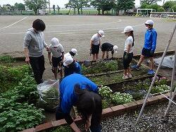6年生:「いいよ。そっと土をかけてあげてね。葉っぱには(土を)かけないようにね。」
