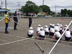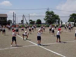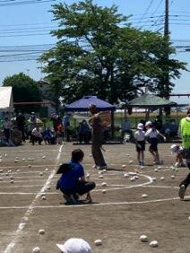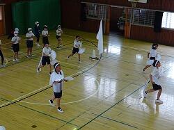 昼休みの『さわやかタイム』の時間に、全校児童会種目『多く玉を入れるのは赤・白どっちだ』の練習をしました。