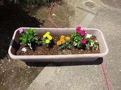 業間休みの後半に、なかよし班ごとにヒマワリを植え替えました