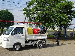 6時の開門と同時に保護者と教職員で校庭の水取りやブラシかけをしました
