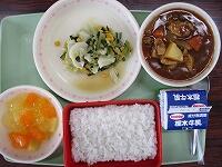 ごはん ポークカレー キャベツと小松菜のソテー レモンのジュレポンチ 牛乳