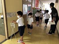検査で使用する部屋は十分に換気をし、入室する児童は1人としました。また、順番を待つ児童も廊下で間隔をあけて手指の消毒をして待機しました。(手荒れで消毒ができない児童は十分に手洗いをしました。)