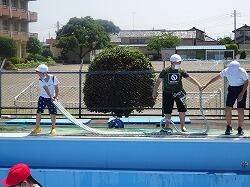 【4年生】シャワー場や足洗い場の清掃とプール沿いのオーバーフローを担当しました。