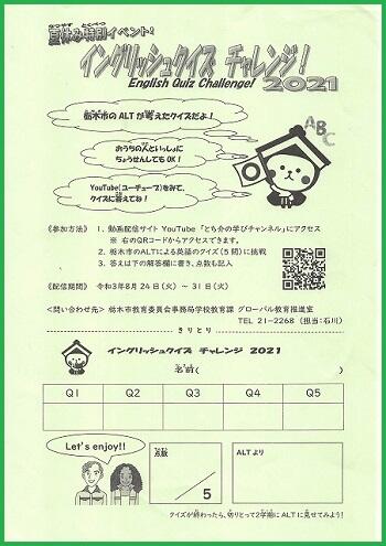 夏休み前に配られたきみどり色のプリントを用意して、栃木市のALTが考えたクイズにチャレンジ❗