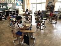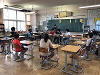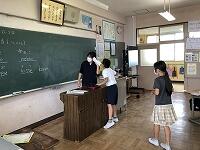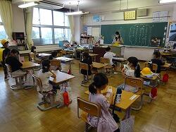 1学期と同じく、校庭側の窓も廊下側のドアも開けて、教室の空気を常に入れ換えています。