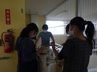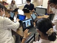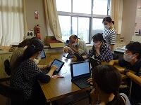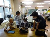 その後、各教室に分かれて、タブレット接続の確認や、明日から子どもたちに「タブレットを家に持ち帰って操作する方法」の研修をしました。