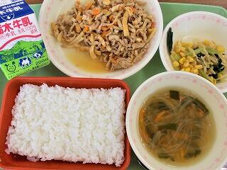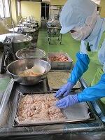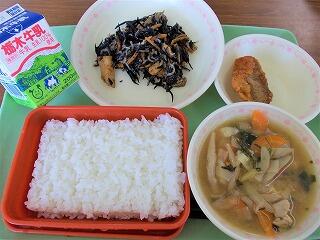教室では、職員室の先生もお手伝いに入って、衛生面に気をつけて配膳します。