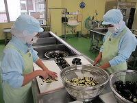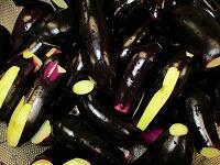 たくさんのなすは、よ~く洗って、1本ずつ切っていきます