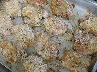 とりにくのハーブやきは、パンこ、バジル、しお、こしょうであじつけ