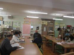 5年生の授業公開の後、図書室において、先生方の授業研究会がありました。