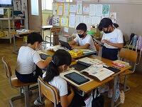 朝の、ちょっとした時間ですが、子どもたちは“学び”の共有をしています。生活の中の大切な『学び合い』の場です。気付いたことを、カードに絵や言葉でかいたり、伝え合ったりしていきます。