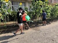 お祭りの後半は、校庭に出て水鉄砲大会。
