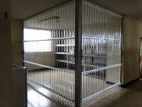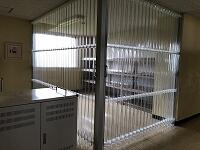 【2階3階の配膳室に、アコーディオンカーテンが取り付けられ、2学期からダムウエーターが使えるようになります】