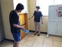 ほかにも救急車を呼ぶような大けがや病気などが発生した際の校内連携の流れを確認しました。今回は職員室と現場をリモートでつなげてそれぞれの様子を確認しながらの研修を行いました。