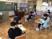 放送室から放送を流し、それぞれの教室では、プレゼンテーションのスライドや動画を、テレビ画面で見てもらうというやり方です。