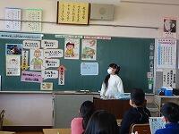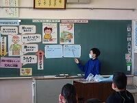 東陽ブロック小中一貫教育の取組の一つで、「中学校教員による乗り入れ授業」があります。今年度は、コロナ禍のため、多くの教科で実施することはできませんでしたが、5時間目に、東陽中の英語の先生が本校で、6年生に英語の授業をしてくださいました。
