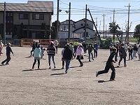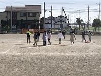 昼休みには、6年生と5年生が校庭で一緒に遊んでいました。