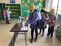 自動(スタンド型)→自動(置き型)→手動と、3回消毒をしている子もいましたが…中身は、同じ消毒液なので、1回噴射で、よく乾くまでこすれば、効果は同じですよ~