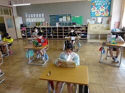 5年生はプリント、6年生は算数の教科書問題に取り組んでいましたよ。