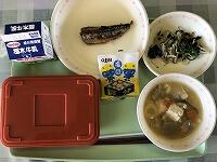 【ごはん・いわしのしょうが煮・もやしとほうれん草の海苔あえ・豚汁・福豆・牛乳】でした。