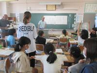 本日は、県の教育委員会からエキスパートティーチャーの派遣があり、本校の児童が体育の授業を受けました基礎的運動能力の課題に応じた体力向上の充実を図るのが目的です。特に、投力についての指導を受け、児童