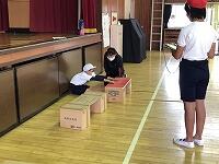 外での測定の待ち時間には、昇降口等で休憩させました。幸い、暑さもそれほどではなかったので、マスクをつけたままできました。