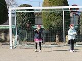先日は風の中、「たこ揚げ」を楽しんでいました。そして、今日は「羽子板」にチャレンジしていました。