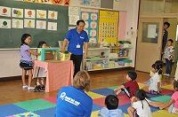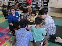 「話そう集会」もコミュニケーション能力を培う取組の一つです。1年生から6年生までの異年齢のグループで、話し合い活動を行います。6年生はリーダーシップを学び下学年の子どもはフォロアーシップを学びます。この日は、来年入学する子どもたちを交え折り紙の折り方をなかよく学びました。外部講師として栃木市教育委員会の指導主事の先生によるおもしろ理科教室も行いました。この時間は、自分たちで「スライム」をつくって遊びました。