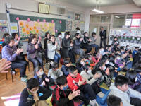 次に、ふれあいルームで、全校生の発表です。合奏、群読、歌等それぞれの学年が工夫をこらしました。