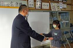 感染対策として。オンラインにて代表児童に賞状が渡されました。
