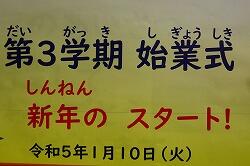 星干支や年号についての説明や、児童が元気に登校して嬉しかったこと、3学期にがんばって欲しい「3つの”あ”+ワン1」の話がありました。